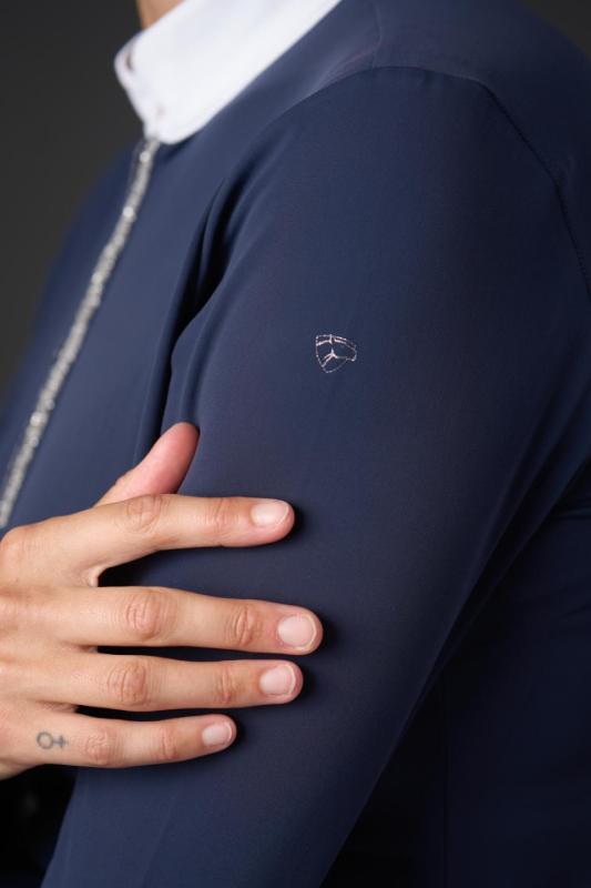 Denna Catago långärmade tävlingsblus kombinerar funktion och elegant design och passar lika bra på tävlingsbanan som till vardags. Den höga kragen och den figursydda passformen ger en stilren siluett, medan halvdragkedjan fram dekorerad med kristaller tillför en subtil glans.