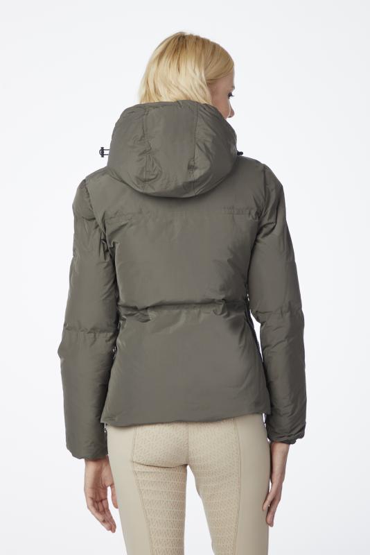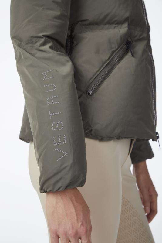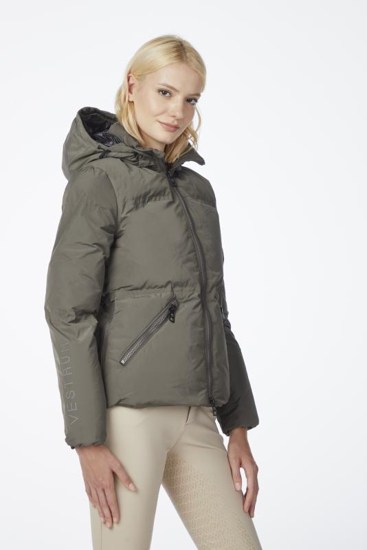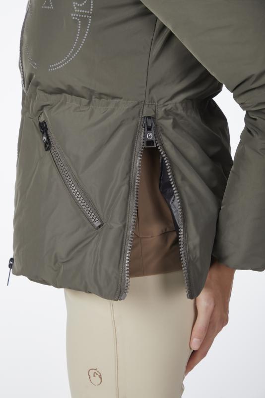 Exklusiv vindtät damjacka med hållbart ecodown-foder. Lyxiga logodetaljer och sidodragkedjor för perfekt passform och elegans.