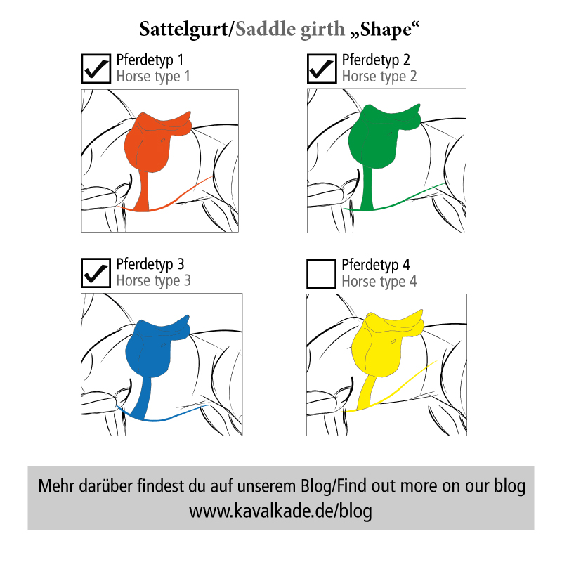 Kavalkad Shape sadelgjord är en anatomiskt utformad sadelgjord som ger hästen optimal rörelsefrihet och hög komfort. Den generösa armbågsfriheten minskar risken för skav och begränsning i steget, samtidigt som den bredare mittdelen bidrar till en jämn och behaglig tryckfördelning över bröstkorgen. Resår på båda sidor ger en flexibel och följsam anpassning utan att kompromissa med stabiliteten.