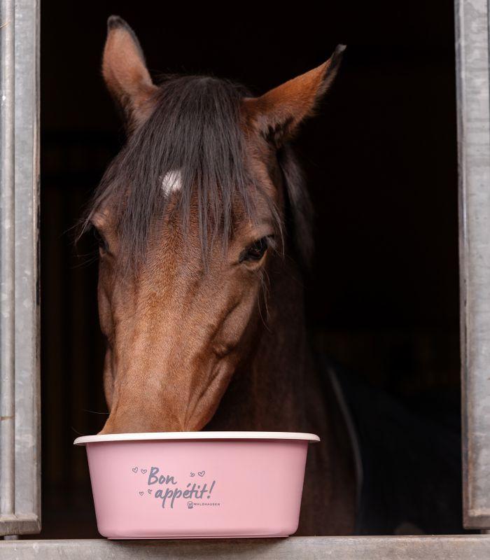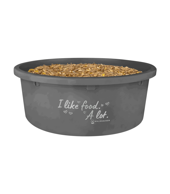 Tillverkad i Tyskland av livsmedelssäker plast, vilket gör den slitstark, hygienisk och trygg att använda för hästfoder. Den kan självklart också användas till andra ändamål, både i stallet och på resan.