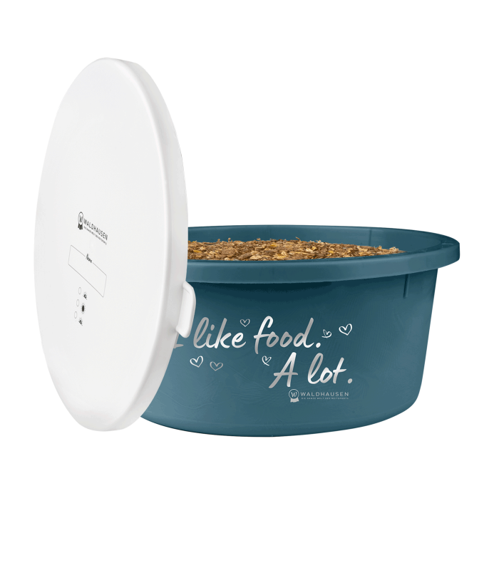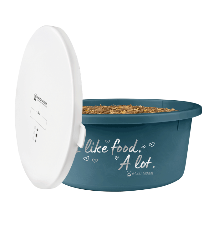 XL-matskålen är både praktisk och mångsidig – perfekt att ta med på tävlingar, träningar eller resor. Den rymmer hela 8 liter och har ett lock som skyddar fodret mot möss och smuts. Lockets yta går dessutom att skriva på, så att du enkelt kan märka innehållet.