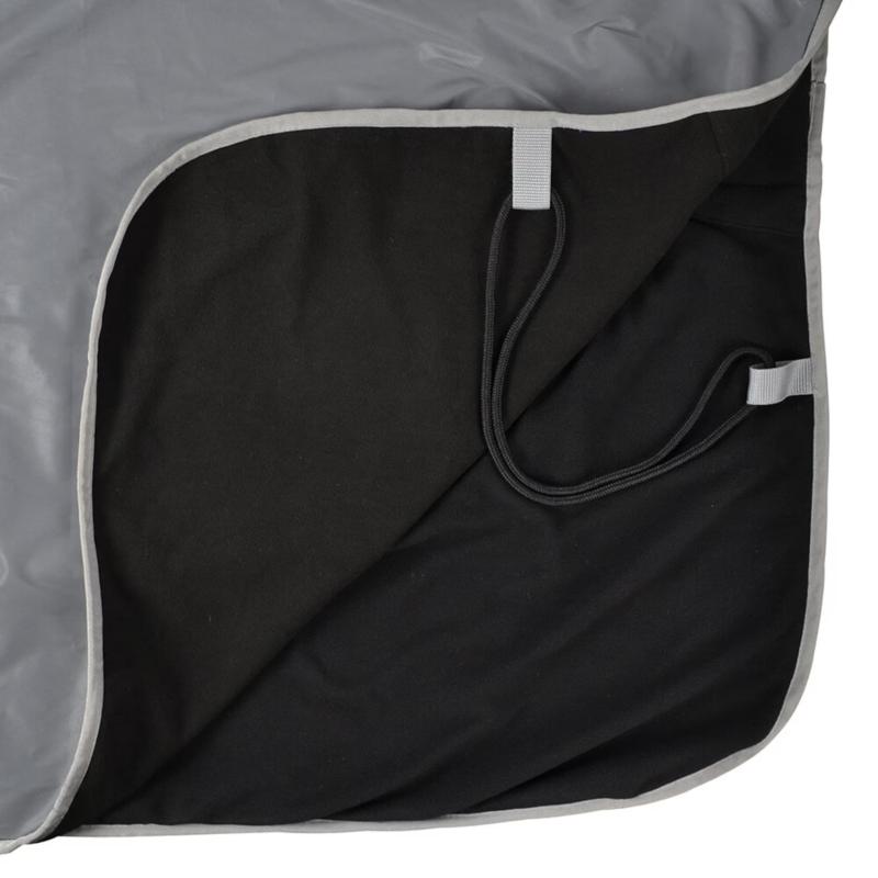 Reflekterande silverfärgat ländtäcke med fleecefoder – vattenavvisande, justerbart och ökar hästens synlighet i mörker.