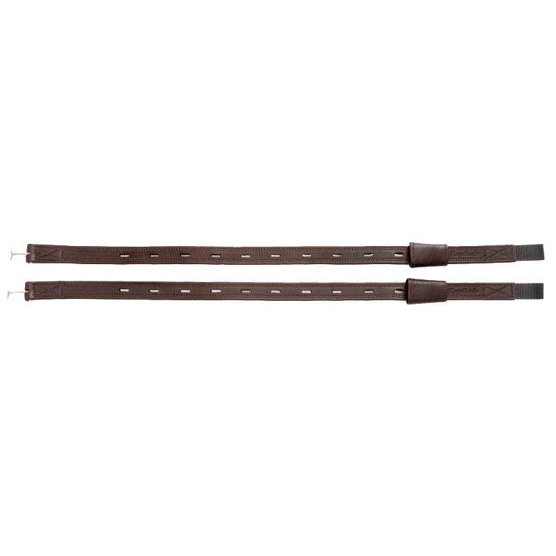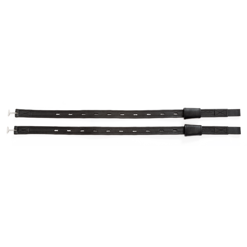 Exklusiva dressyrstigläder tillverkade av mjukt, oljat läder med slitstarkt nyloninlägg för ökad hållbarhet. Den extra platta designen, med endast ett lager i den övre delen, ger nära kontakt och minimerar bulk under sadelkåpan. Fästs smidigt med T-fäste och levereras med skydd för ett stilrent och funktionellt intryck.