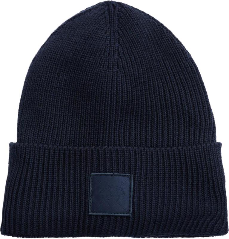 Ribbstickad mössa med fleecefoder och ton-i-ton logobadge – varm, mjuk och stilren för stall och vardag.