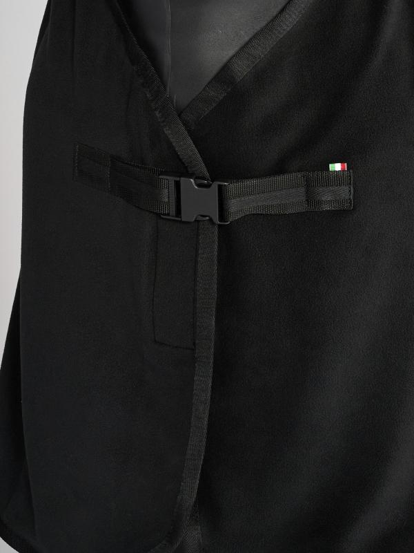 Detta exklusiva fleecetäcke från italienska Vestrum kombinerar funktionalitet med tidlös design. Tillverkat i högkvalitativ fleece som effektivt transporterar bort fukt, håller hästen torr och ger en mjuk övergång vid avsvalning. Den klassiska frontknäppningen gör täcket enkelt att använda, medan den kontrasterande Vestrum-loggan på sidan tillför en sofistikerad detalj. Perfekt både på tävling, i stallet eller under transport – ett täcke som utstrålar italiensk lyx och omtanke för hästens välbefinnande.