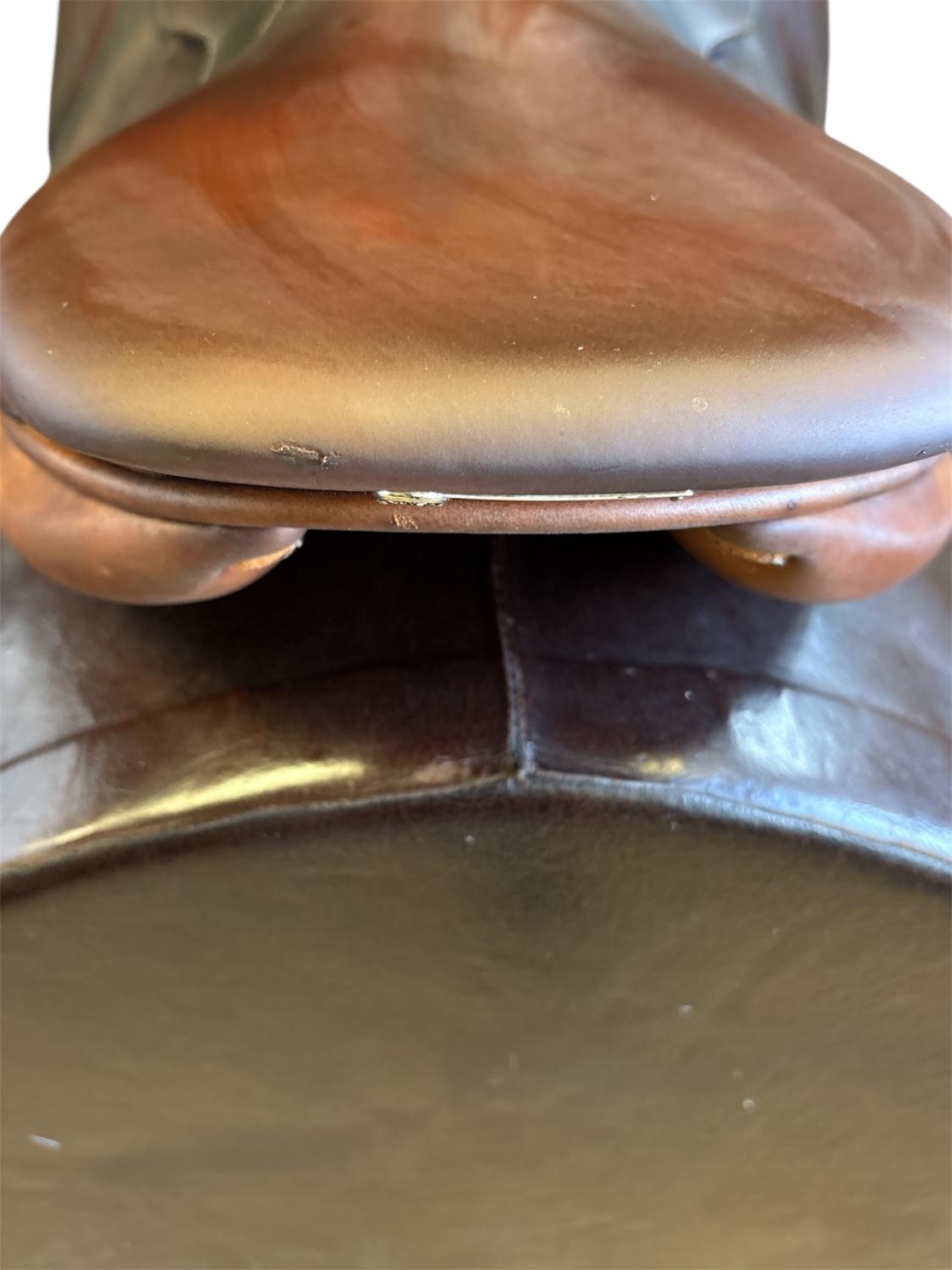 Sadeln har gått igenom en godkänd besiktning av sadelutprovare och sadelmakare utvändigt när den lämnas in till försäljning. Tänk dock på att detta är en begagnad vara och den säljs i befintligt skick. Vi som butik lämnar inga garantier på läder och bom utöver återförsäljarens garantier som utförs när sadeln tillverkas. Vi noterar i annonsen om sadeln har mer skador än normal slitage för sin ålder och sadeln värderas efter det skick den är i.