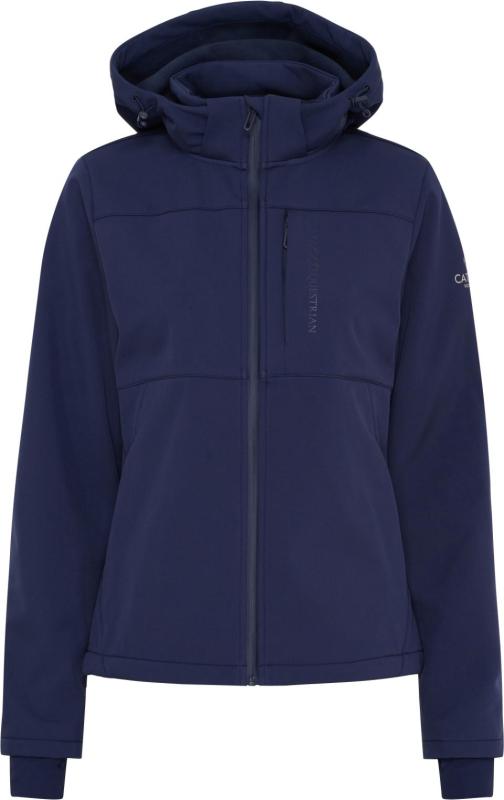 Stilren och bekväm ridjacka från Catago i mjuk softshell med vind- och vattenavvisande egenskaper. Jackan har en smickrande passform med sportiga detaljer och justerbar nederkant. Den avtagbara huvan ger flexibilitet efter väder och behov. Utrustad med två praktiska fickor med dragkedja samt en diskret bröstficka med dold dragkedja. Reflekterande print på ärmen och gummilogga på bröstet ger en modern finish, medan dekorativa tryck på insidan adderar en exklusiv känsla.