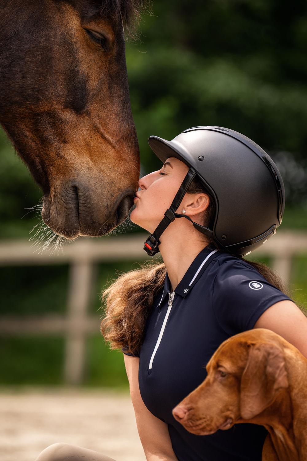 En stilren och sportig pikétröja i funktionell piqué – perfekt för träning, tävling eller en välklädd look i stallet.