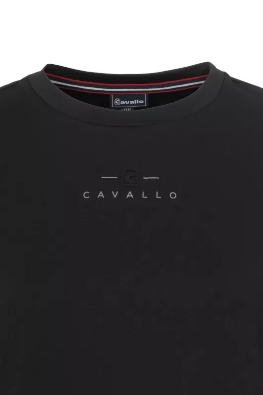 Framtill pryds tröjan av ett stilrent Cavallo-stigbygeltryck och vid vänster ärmslut finns en diskret logodetalj. Kontrasterande material baktill ger plagget ett modernt och sportigt uttryck som gör det lilla extra för helheten.