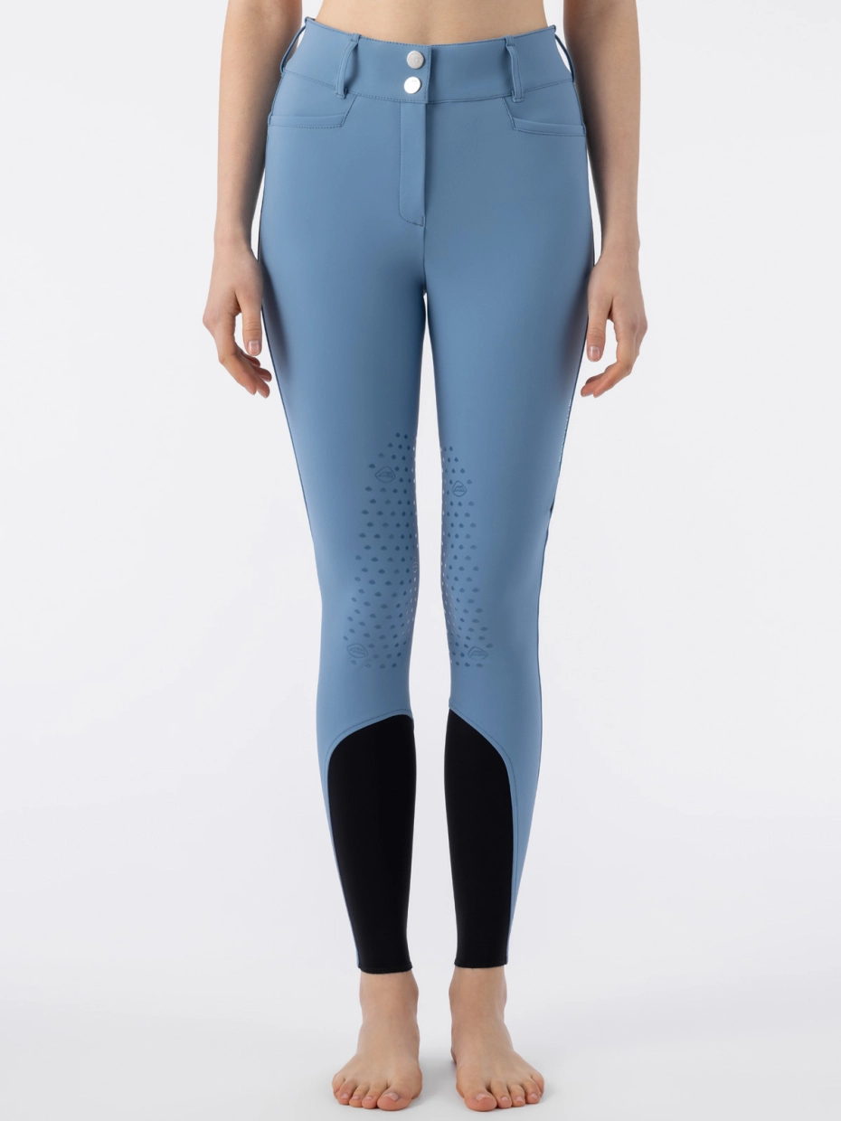 High waist-ridbyxa i Provincial Blue med knee-grip och exklusiva microstud-detaljer. Komfort möter italiensk lyx.