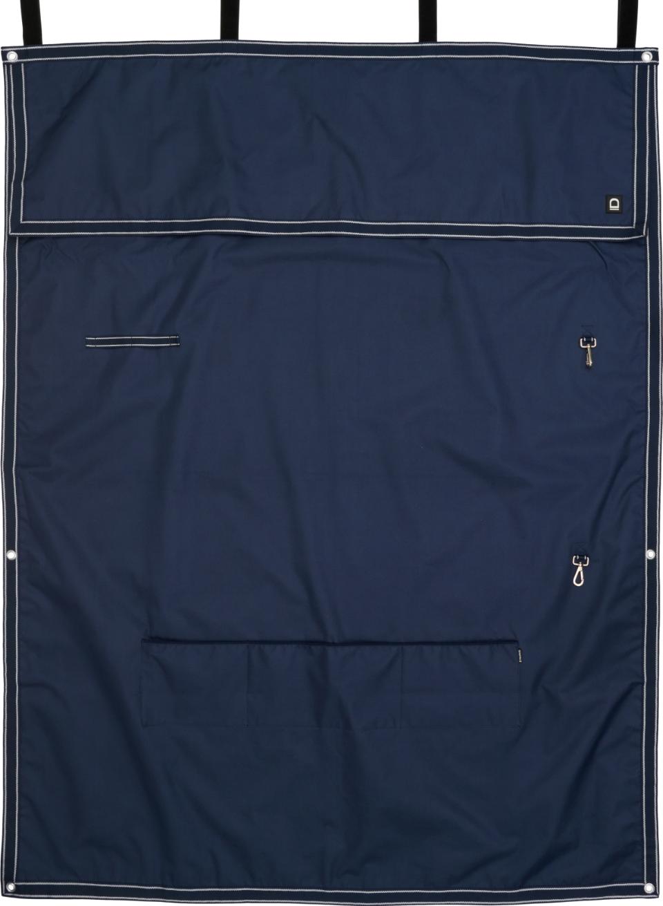 Stilren boxgardin i navy med silverdetaljer. Praktiska fickor, enkel upphängning och stabil passform för vardag i stallet.