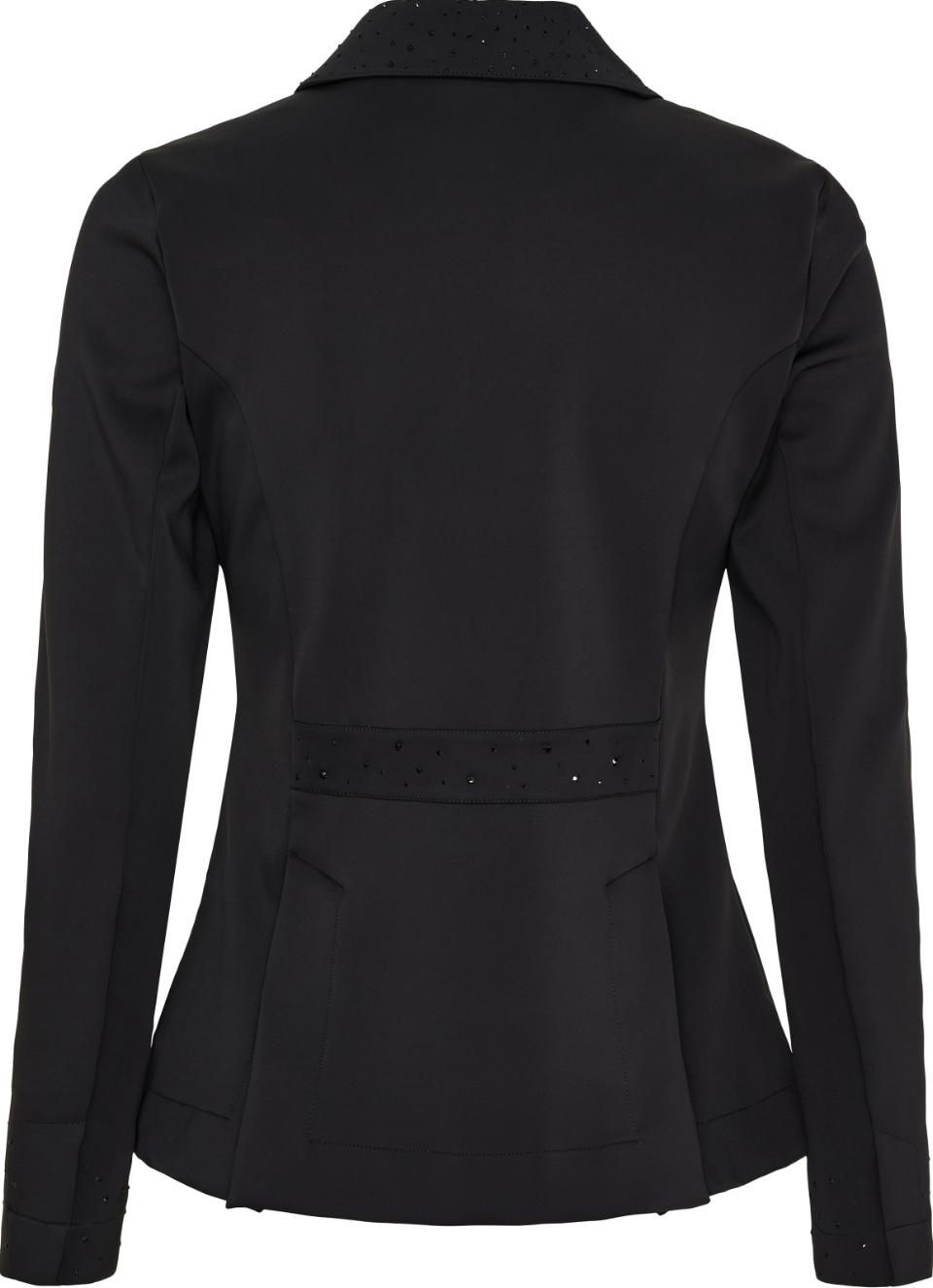 Elegant tävlingsfrackett med stretch, dubbel knäppning och diskreta strasdetaljer. Bekväm passform med god rörelsefrihet.