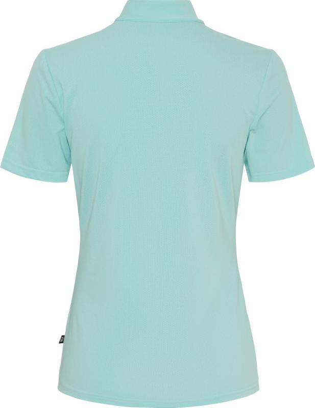 Sportig kortärmad funktionstopp från Equipage med half-zip och liten ståkrage. Dragkedjan går hela vägen upp i kragen och har en blank, metallisk finish med dekorativ rund zip-detalj. Designen kompletteras av ett ton-i-ton stigbygelmotiv på vänster bröst samt logoprint på ärmen. Materialet har en allover nålstruktur, kallad butterfly mesh, som inte bara ger ett stilfullt uttryck utan också bidrar till utmärkt ventilation under varma sommardagar.