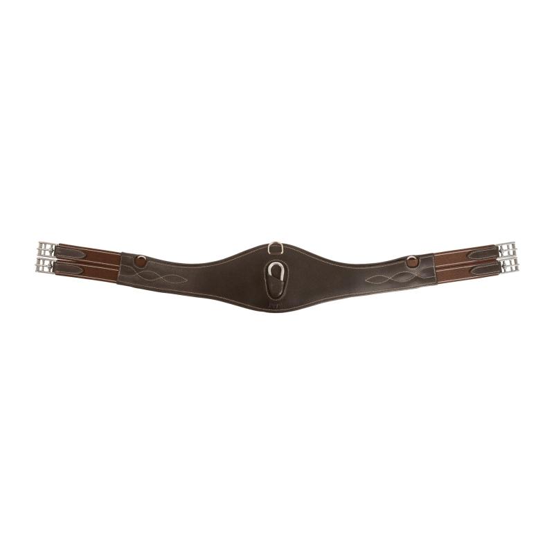 Anatomiskt utformad sadelgjord i vegetabiliskt garvat högkvalitativt läder som ger optimal komfort och passform. Den kombinerar styrka och flexibilitet för att hålla sadeln i bra position. Med kraftig trippel resår i båda ändar, snygga stickningar och tre D-ringar är den både funktionell och stilren. Karbinhaken gör det enkelt att fästa förbygel eller martingal, och den mindre magplattan är proportionerlig efter storlek.