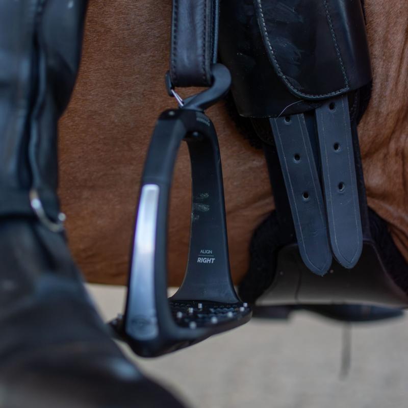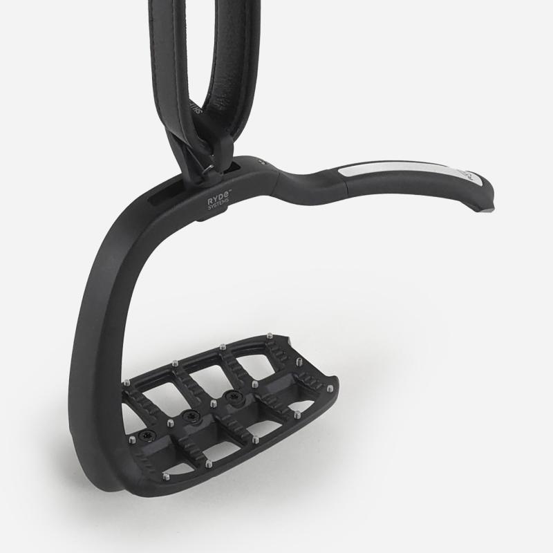 - Balanserad geometri och konkavt greppmönster - stabil plattform med säkert grepp, utformad för harmoni mellan ryttare och häst.