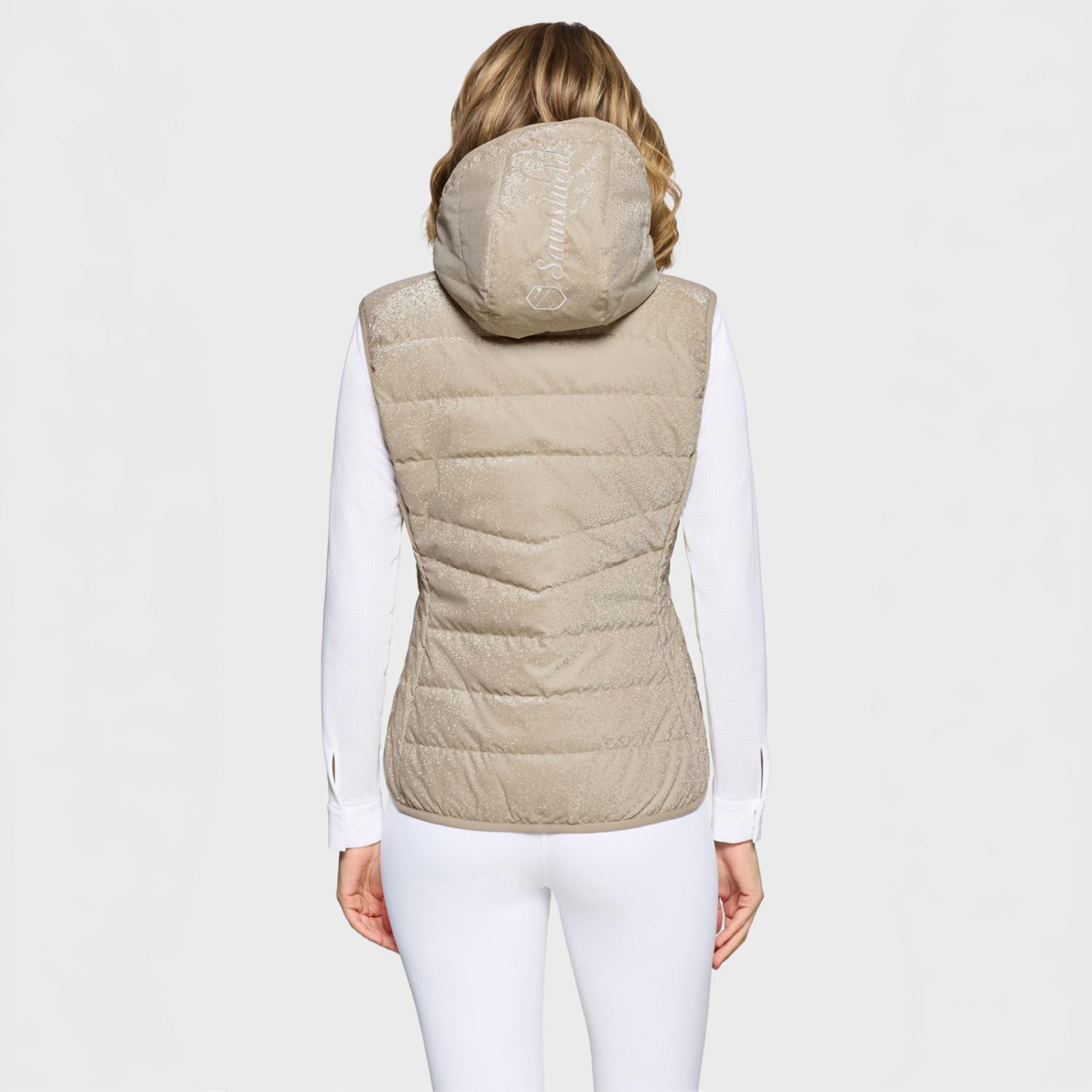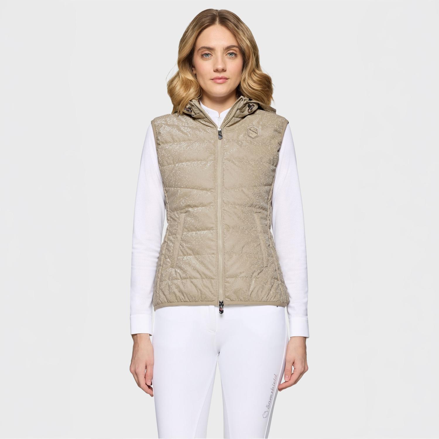 Västen är utrustad med avtagbar huva och praktiska dubbeldragkedjefickor. Den exklusiva Metaluxe-dragkedjan förstärker den sofistikerade designen, medan Samshields kristallblazon framtill och broderad logotyp på huvan ger en diskret premiumkänsla.