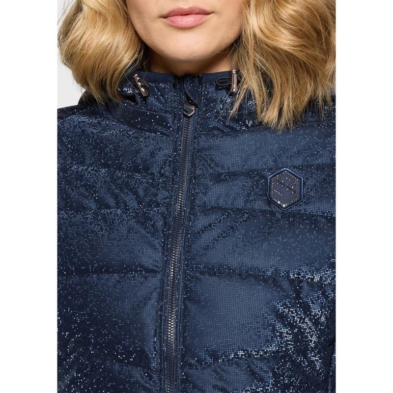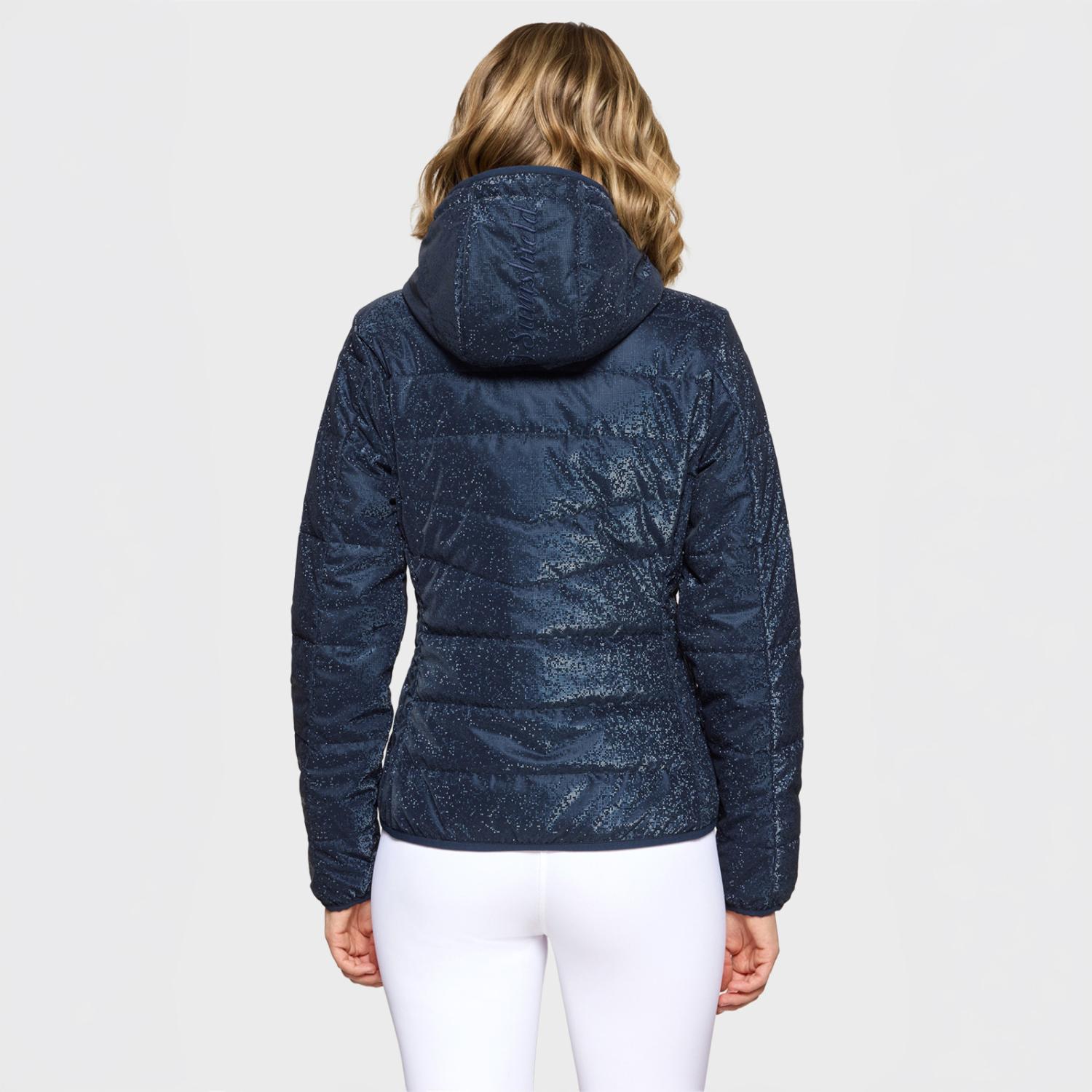 Den figurnära passformen framhäver silhuetten, medan det grafiska Ice-mönstret ger en modern och exklusiv look. Jackan har praktiska fickor med dubbel dragkedja samt en stilren Metaluxe-dragkedja framtill. Det ikoniska Samshield-blazonet i kristaller på bröstet och broderad logotyp på huvan förstärker den eleganta designen.