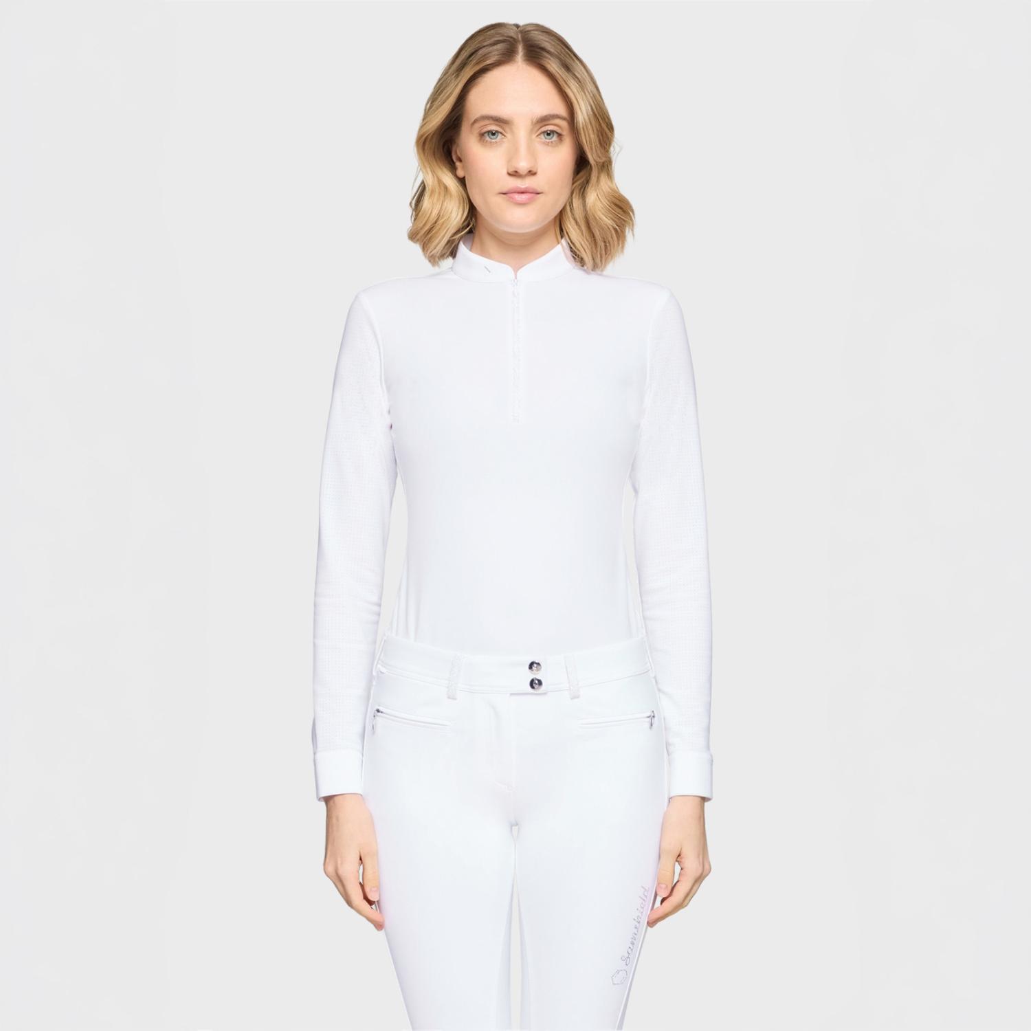 Samshield Lou tävlingstopp kombinerar sofistikerad design med teknisk prestanda. Den figurnära passformen med långa ärmar framhäver siluetten samtidigt som den ger full rörelsefrihet i sadeln.