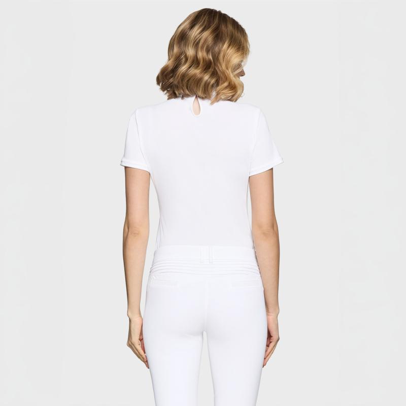 Exklusiv tävlingstopp med elegant passform, Swarovski-detaljer och tekniskt material för maximal komfort och stil.