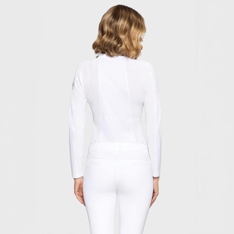 Toppen är utrustad med en diskret ton-i-ton dragkedja framtill för en smidig och stilren look. Exklusiva detaljer som Swarovski-blazon på axeln, kristalldetalj vid dragkedjan och Samshield-logotyp på ryggen ger en lyxig känsla.