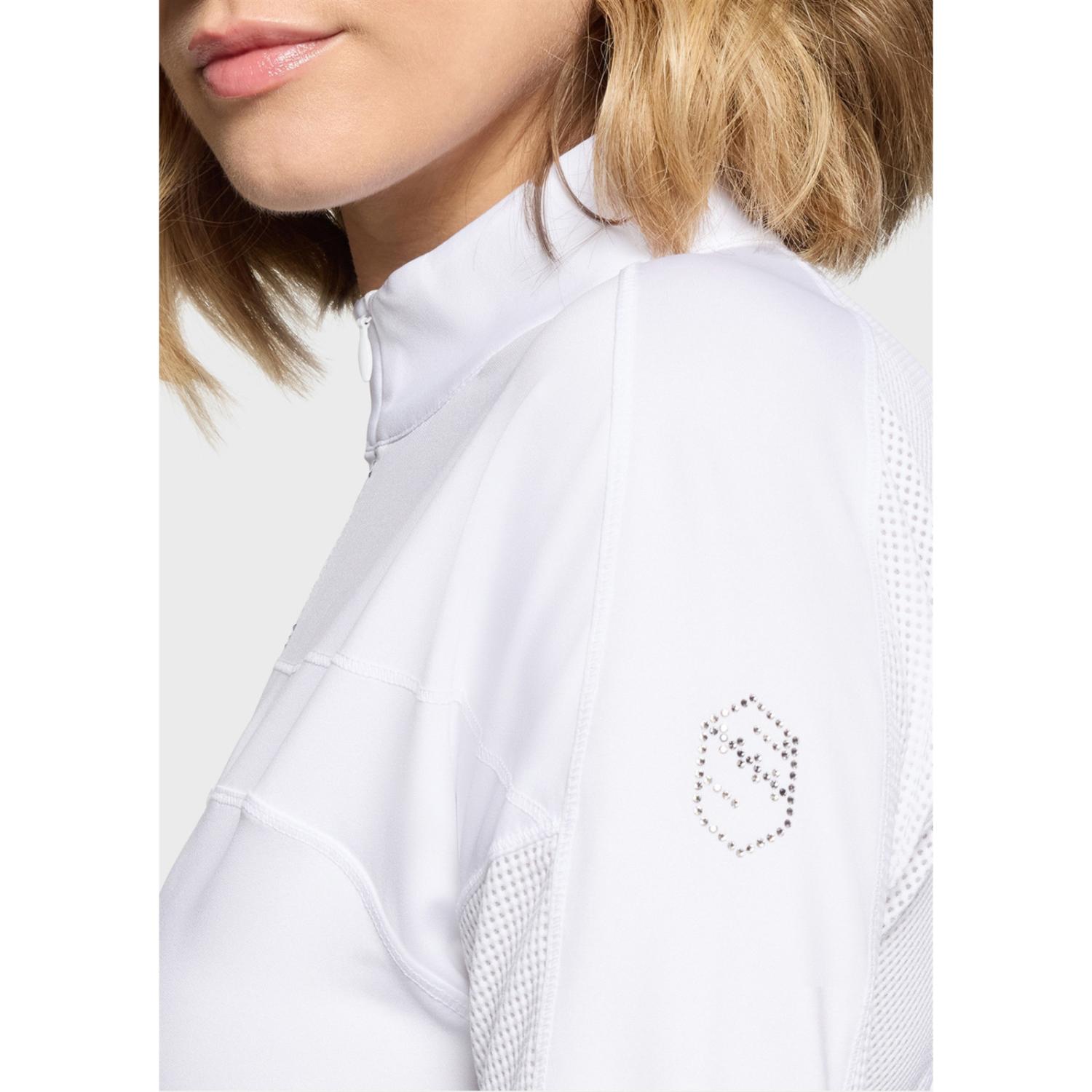 Funktionell träningstopp med meshventilation, UPF 50+ och Swarovski-detaljer – perfekt för stil och komfort i sadeln.