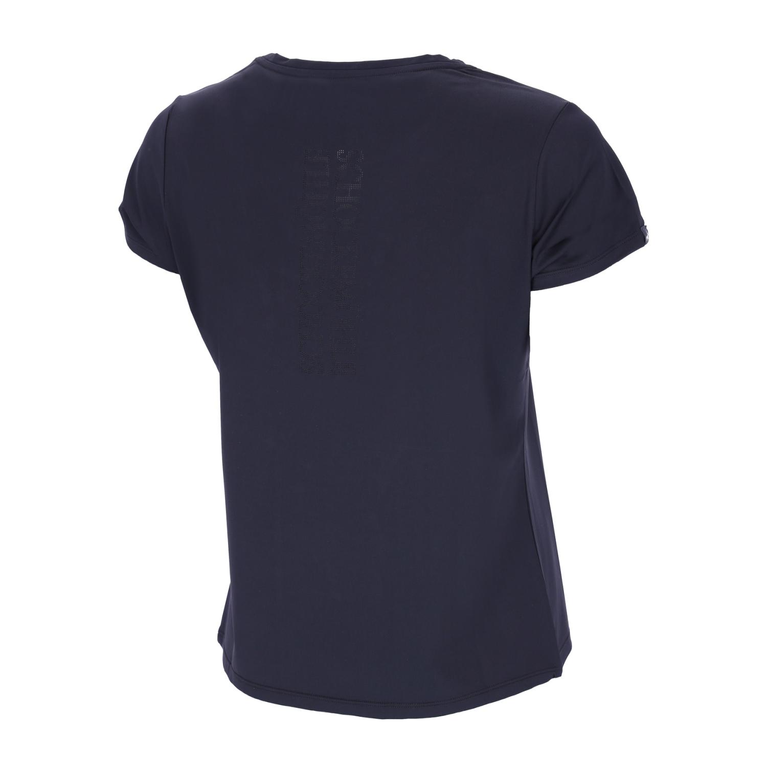 Klassisk T-shirt med straslogo och ventilerande perforering baktill. Sportig stil med en touch av glamour.