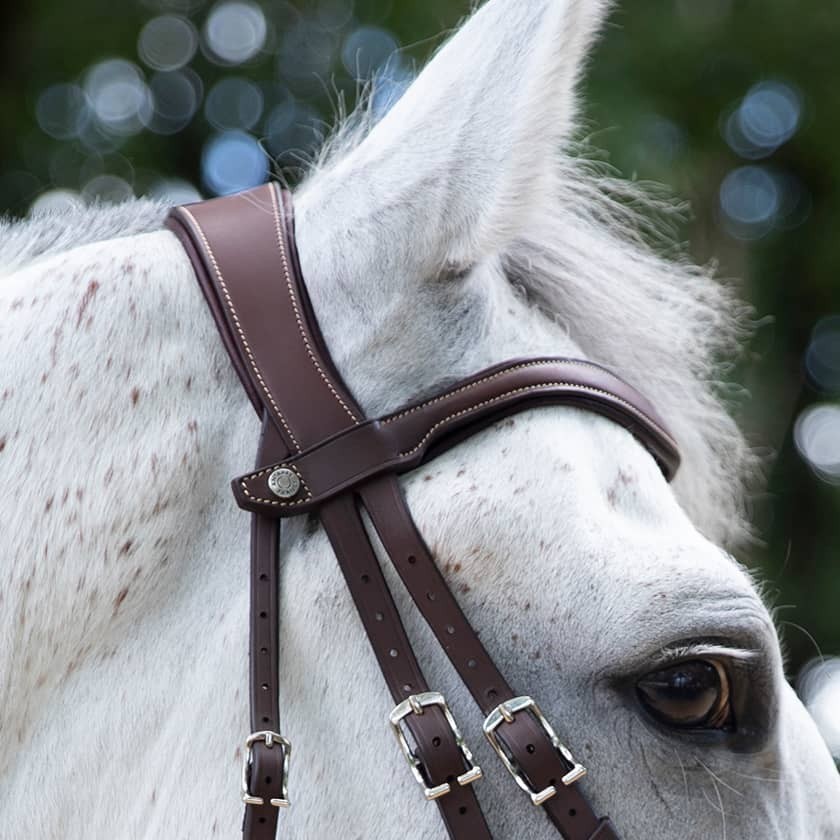 Träns med Aachengrimma ur Antarès nya kollektion ”Origin”. Den undre nosremmen inklusive fäste kan enkelt tas bort.