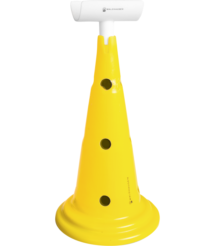 Bomhållarna placeras enkelt i konens öppning och ger en stabil hållare för bommen. De är ett smart komplement till Waldhausens XL-träningskoner och gör det möjligt att bygga upp fler kreativa träningsövningar för både markarbete och ridning.