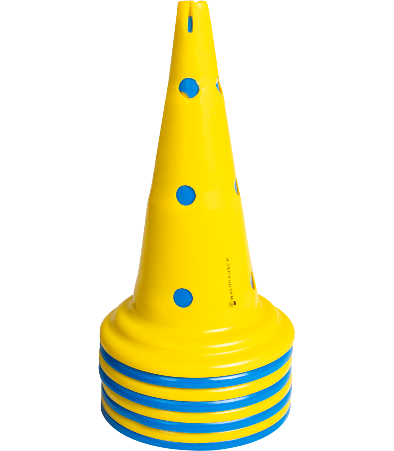 Detta set med 8 XL-konor från Waldhausen är ett praktiskt och mångsidigt hjälpmedel för träning av både häst och ryttare. Konorna är 50 cm höga och ti